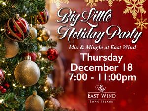 Thursday, December 18, 2025 from 7:00 – 11:00pm East Wind Long Island $69.95 Per Person, Plus Admin Fee + Tax Thursday, December 18, 2025 from 7:00 – 11:00pm All Size Groups Welcome Reservations Required – 631.929.6585