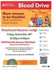 Jennifer Pisano Please consider donating blood to help save 3 lives. All participating donors will receive a Thanksgiving themed long sleeved t-shitt.